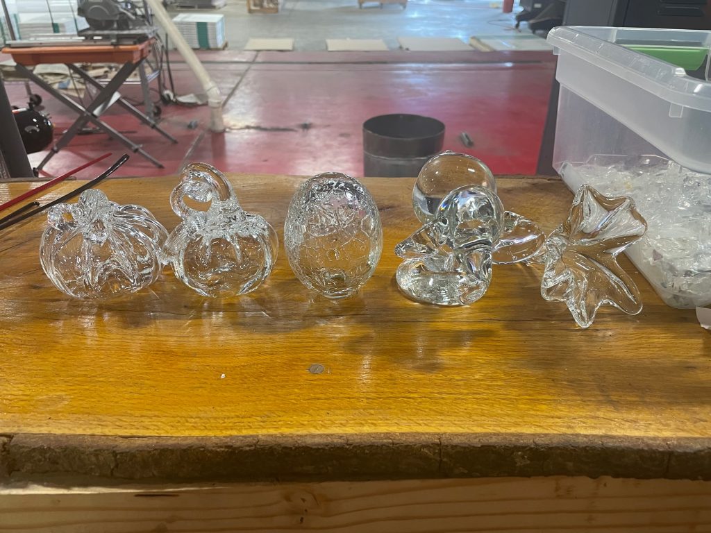 - The class teaches you how to walk, talk, and move through the studio, safety procedures, about tools and how to form basic solid shapes, how to blow bubbles, how to sculpt shapes like fish and create blown forms like cups and small vases.
